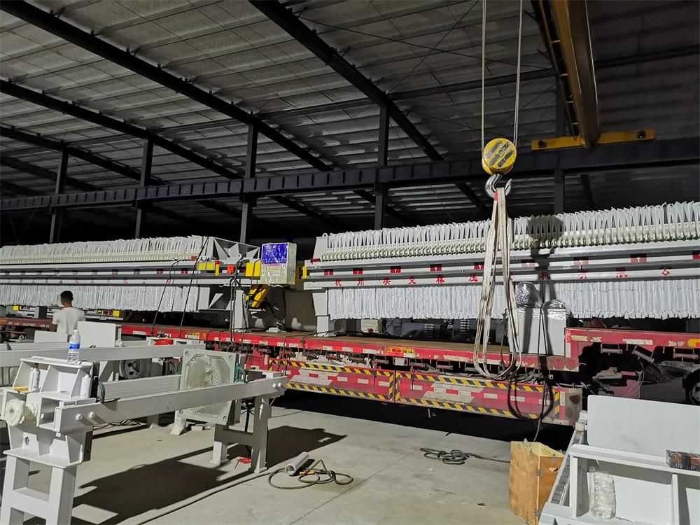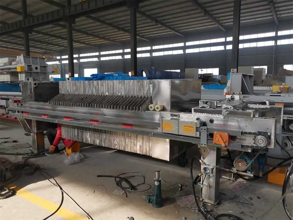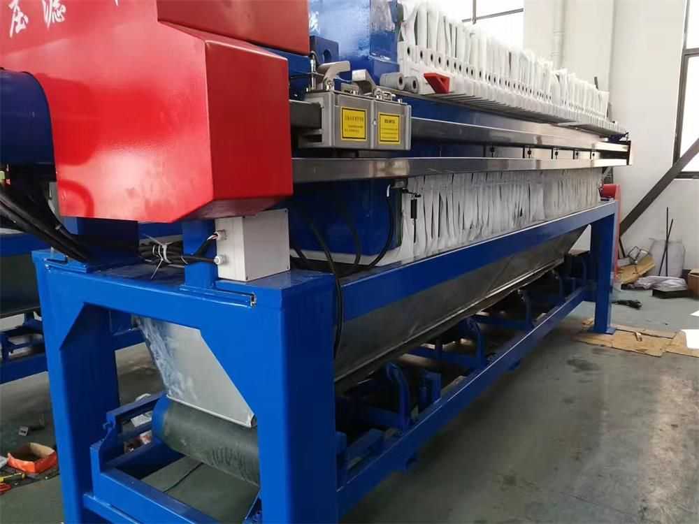 全自動廂式壓濾機與普通廂式壓濾機的不同之處在于多了自動拉板系統,自動接液翻板,自動清洗濾布等系統。使設備操作更加智能化自動化。整機結構設計科學合理,機械強度高、結構穩(wěn)固、經久耐用并且便于操作和維護。